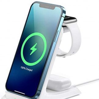 Wireless Charger,AGPTEK 3 In 1 Fast Wireless Charging Stand Station for Apple Watch 6/SE/5/4/3/2/1,iPhone 12/12 Pro/12 Pro Max/11/11 Pro/X/XR/XS/8 Plus (White)